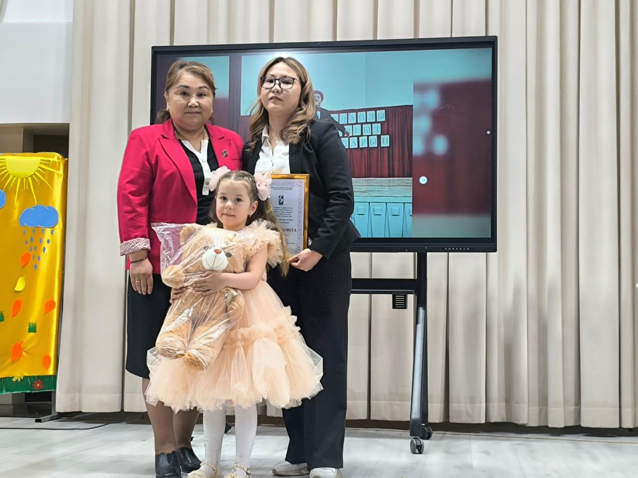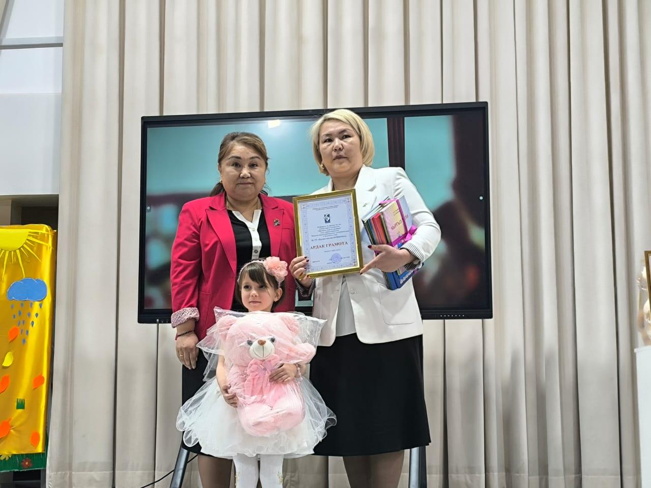 Жогорку деңгээлдеги даярдыгын, чыгармачылык мамилесин жана эне тилине, маданиятына болгон сүйүүсүн көрсөткөн катышуучулар Бишкек шаарынын мэриясынын Билим берүү департаментинин дипломдору жана эстелик белектер менен сыйланышты.